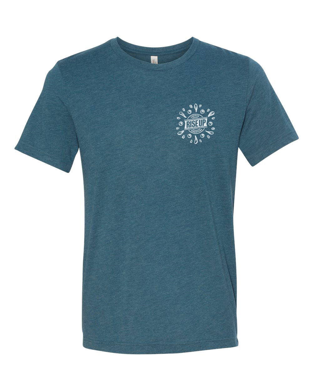 Printed on super-soft Bella + Canvas ‘Steel Blue’ Triblend Shirts.