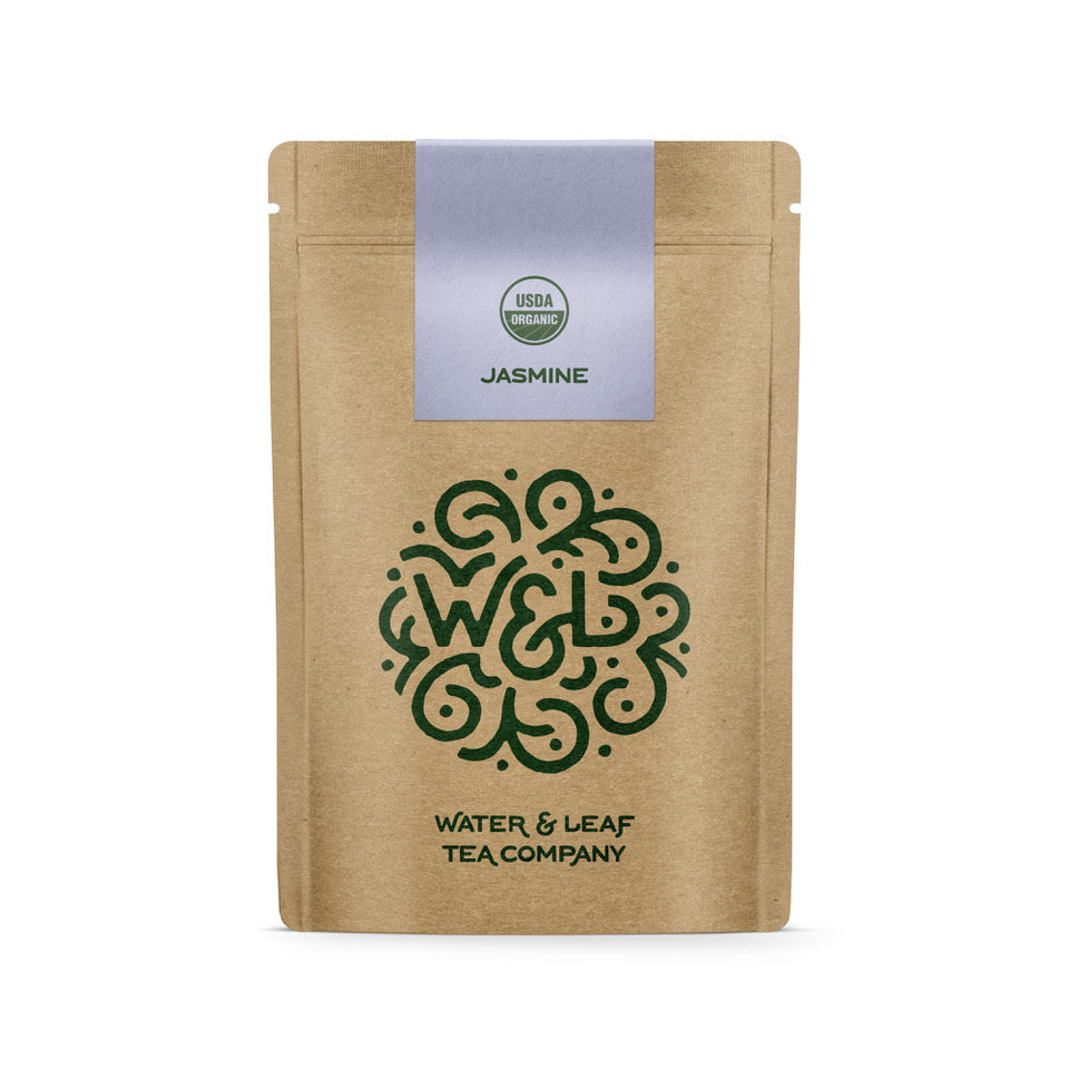 Organic Chinese green tea scented with jasmine blossoms. Jasmine ranges in flavor from tropical fruit to floral. This tea tends to lean more towards the tropical fruit side of the spectrum, with the green tea providing a strong vegetal base.