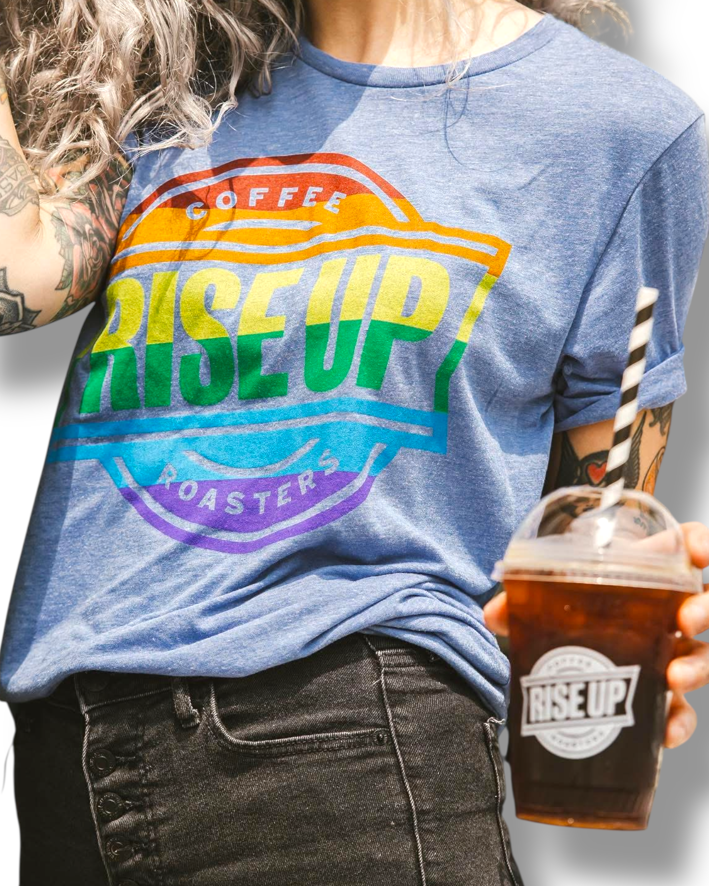 Our Pride Tee celebrates love, equality & the community that makes Rise Up who we are.
